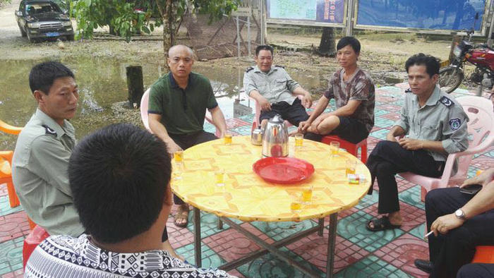 (图为场长苏伟民在南茂管护站对护林人员进行了座谈会了解林区工作情况)