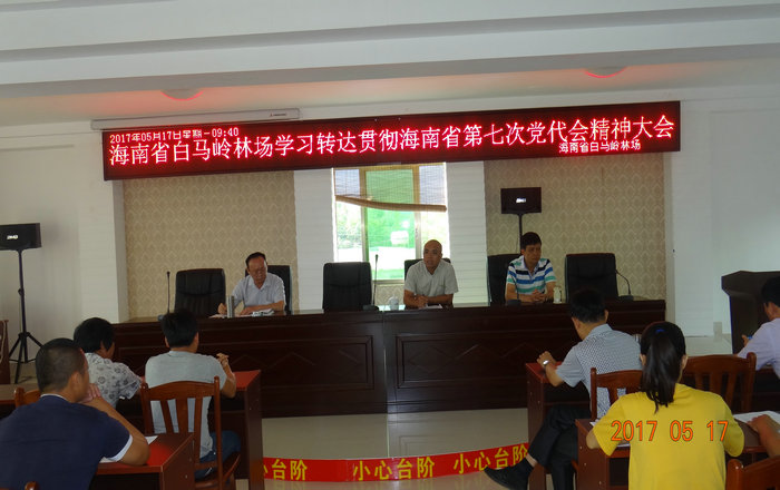 5月17日上午,我场召开传达贯彻海南省第七次党代会精神大会,学习贯彻第七次党代会精神会议。场长苏伟民主持会议并发表讲话,我场全体干部职工党员重点护林人参加了会议。